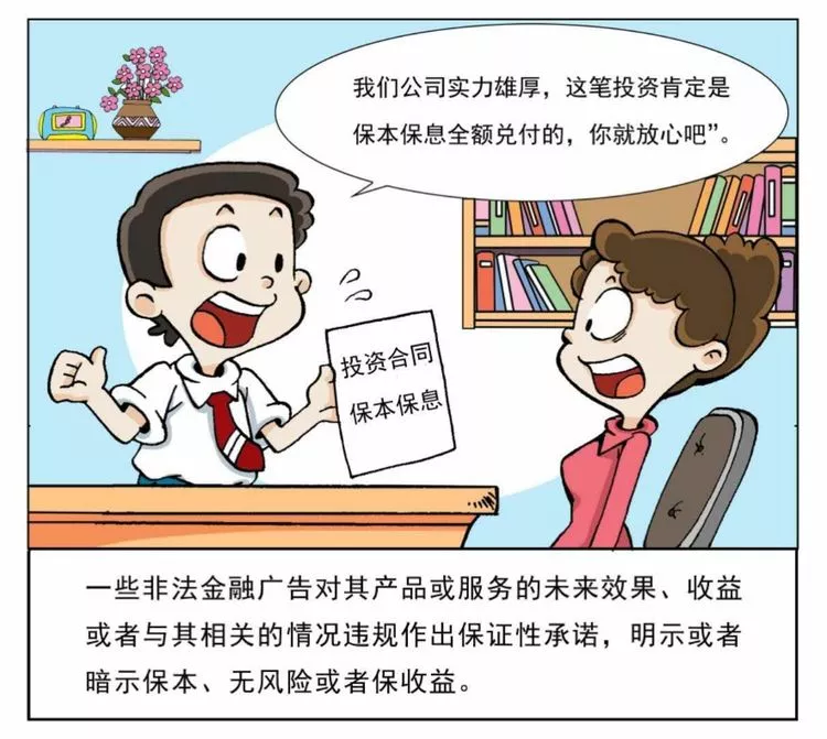近年来,违法违规金融广告夸大收益、隐瞒风险、诱骗投资者和社会公众的问题层出不穷,广告内容故意模糊关键信息,误导消费者,让普通老百姓真假难辨。如何正确识别非法金融广告?今天,成方君通过以下漫画带您了解非法金融广告的真实面目。