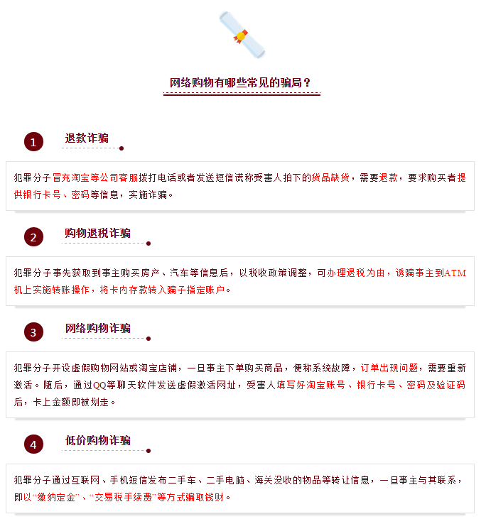 电信网络诈骗已成为犯罪份子实施诈骗的主要手段之一,目前诈骗手段仍在不断翻新,人民群众在收到电信诈骗信息后,因防范意识不强,处理失当,常造成难以挽回的资金损失。广大“剁手党”们越来越离不开的网络购物,也成为一些违法犯罪分子新的目标。